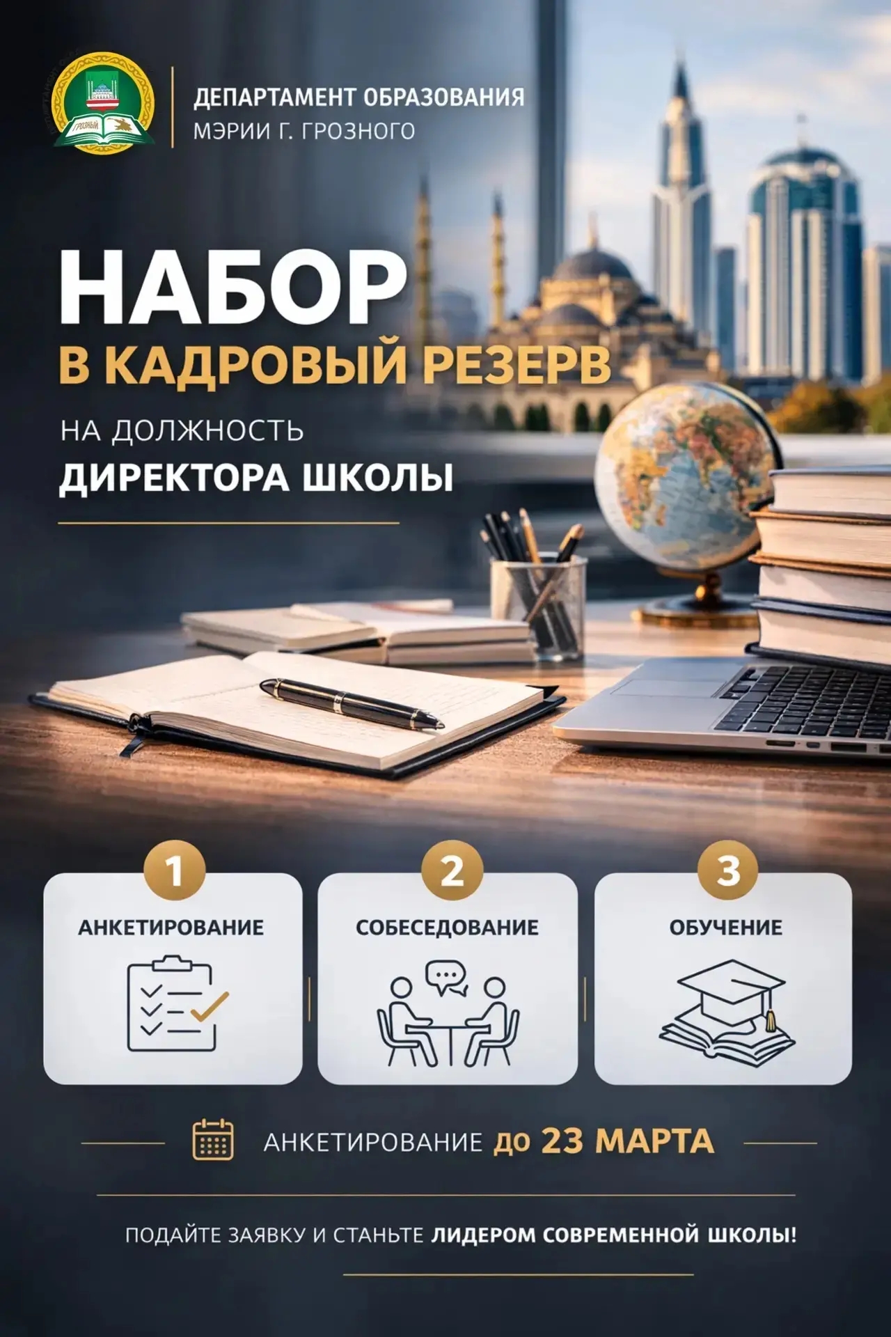 В ГРОЗНОМ ОБЪЯВЛЕН НАБОР В КАДРОВЫЙ РЕЗЕРВ ДИРЕКТОРОВ ШКОЛ В РАМКАХ ПРОЕКТА «ДИЗАЙНЕРЫ ОБРАЗОВАНИЯ».