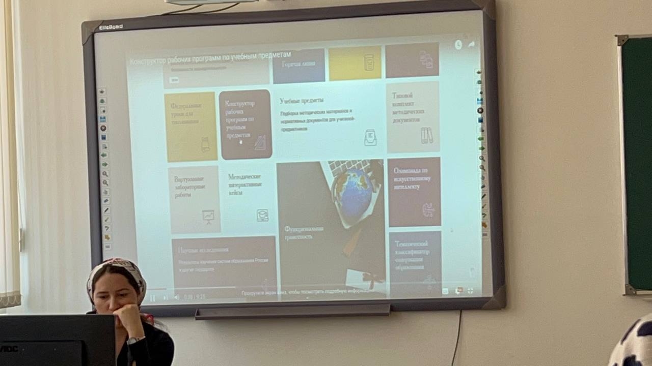 Семинар провела заместитель директора по НМР Алероева Зарема Алимбековна. Она продемонстрировала присутствующих все возможности конструктора рабочих программ. Зарема Алимбековна отметила, что конструктор рабочих программ - это инновационная интерактивная среда проектирования рабочих программ, предназначенная педагогам школы. Данная среда позволяет создавать рабочие программы для всех классов, по любым предметам.