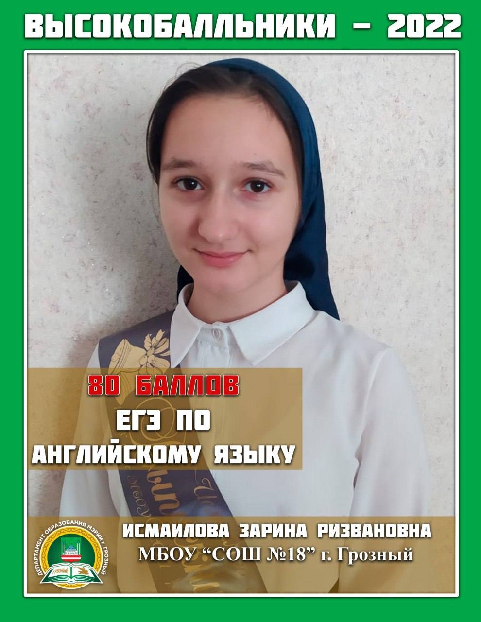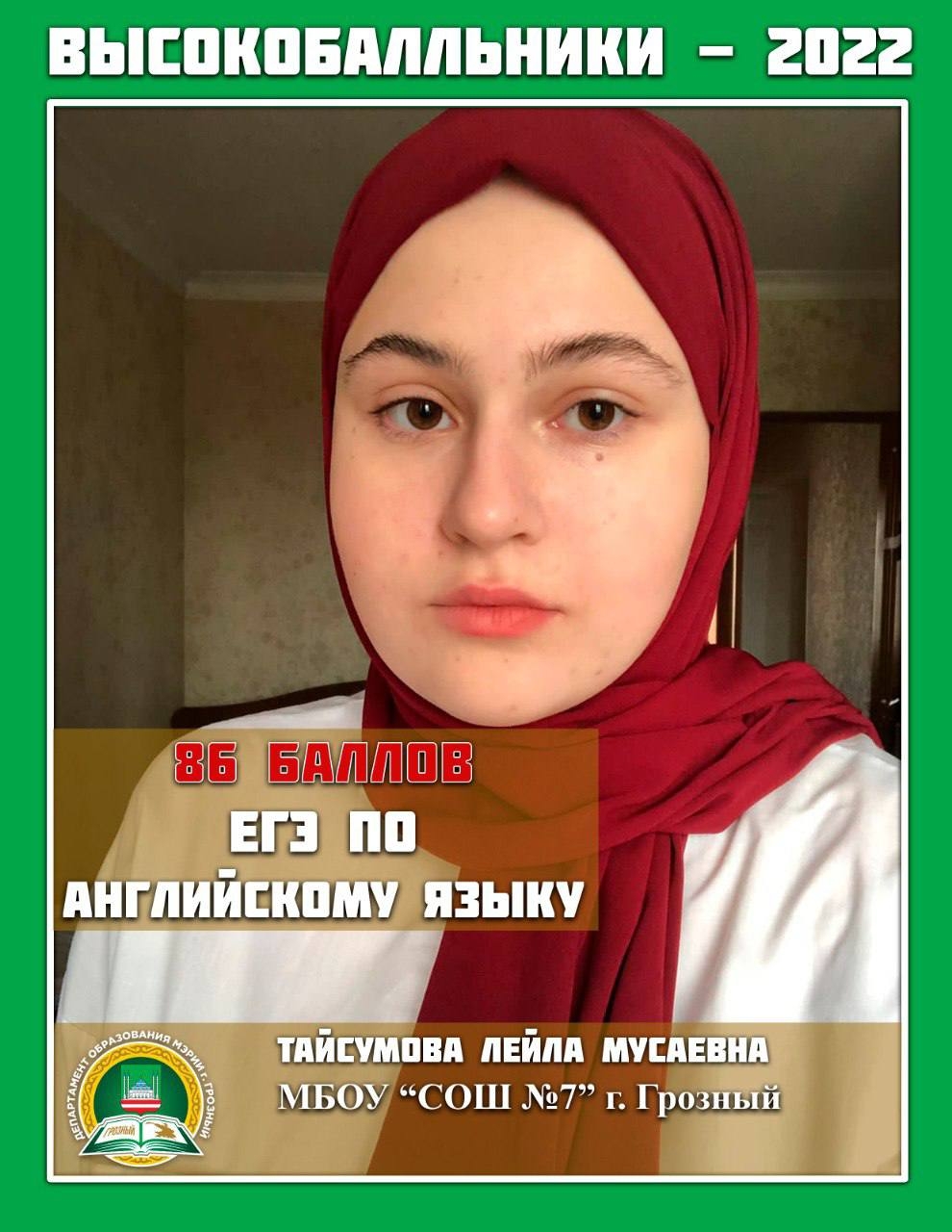 Высокобальники школ города Грозного по Английскому языку(иностранный язык)