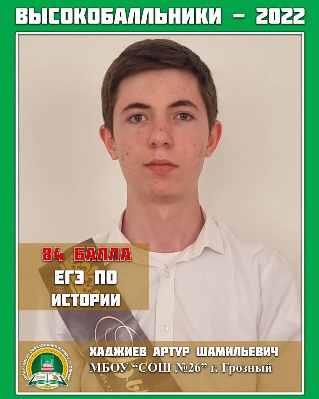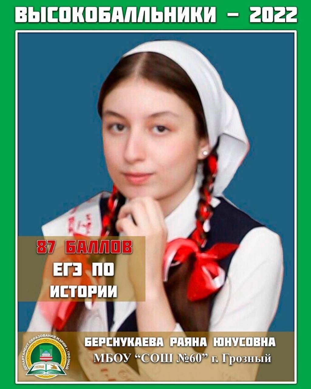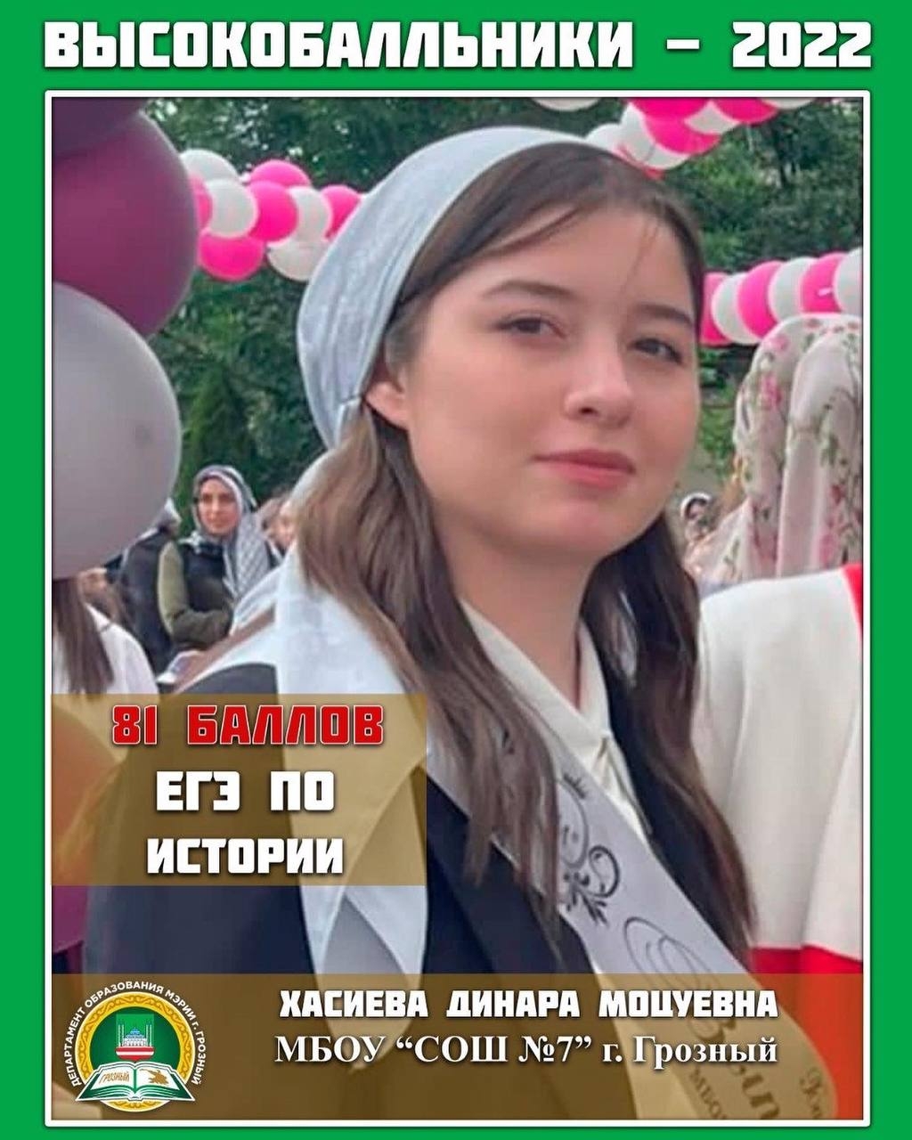 Высокобальники школ города Грозного по Истории