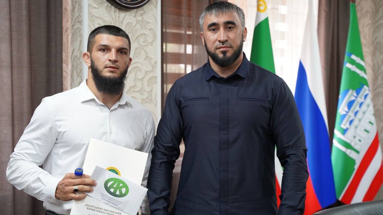 За высокие достижения и вклад в развитие физической культуры и спорта в муниципальном образовании города Грозного в 2021–2022 учебном году Зелимхан Ахматов вручил им Почетные грамоты и денежные средства от Регионального общественного фонда имени Первого Президента Чеченской Республики, Героя России Ахмат-Хаджи Кадырова (Дала г1азот къобалдойла цуьнан).