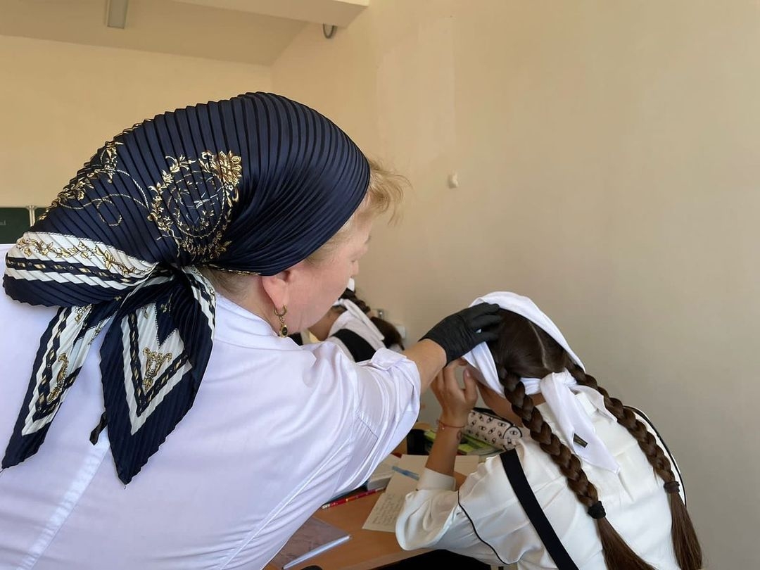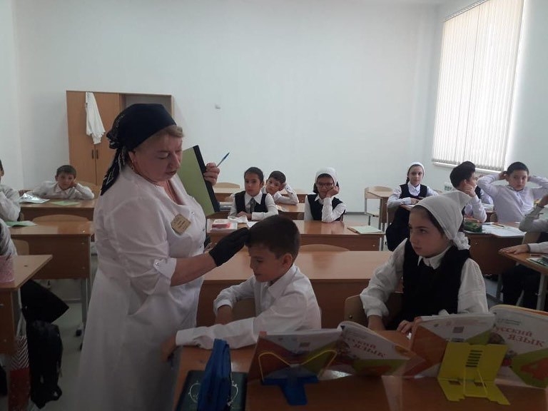 В МБОУ «СОШ №13» г. Грозного медицинской сестрой, Дакиевой Т.Э., проведен профилактический осмотр на педикулез и кожные заболевания.