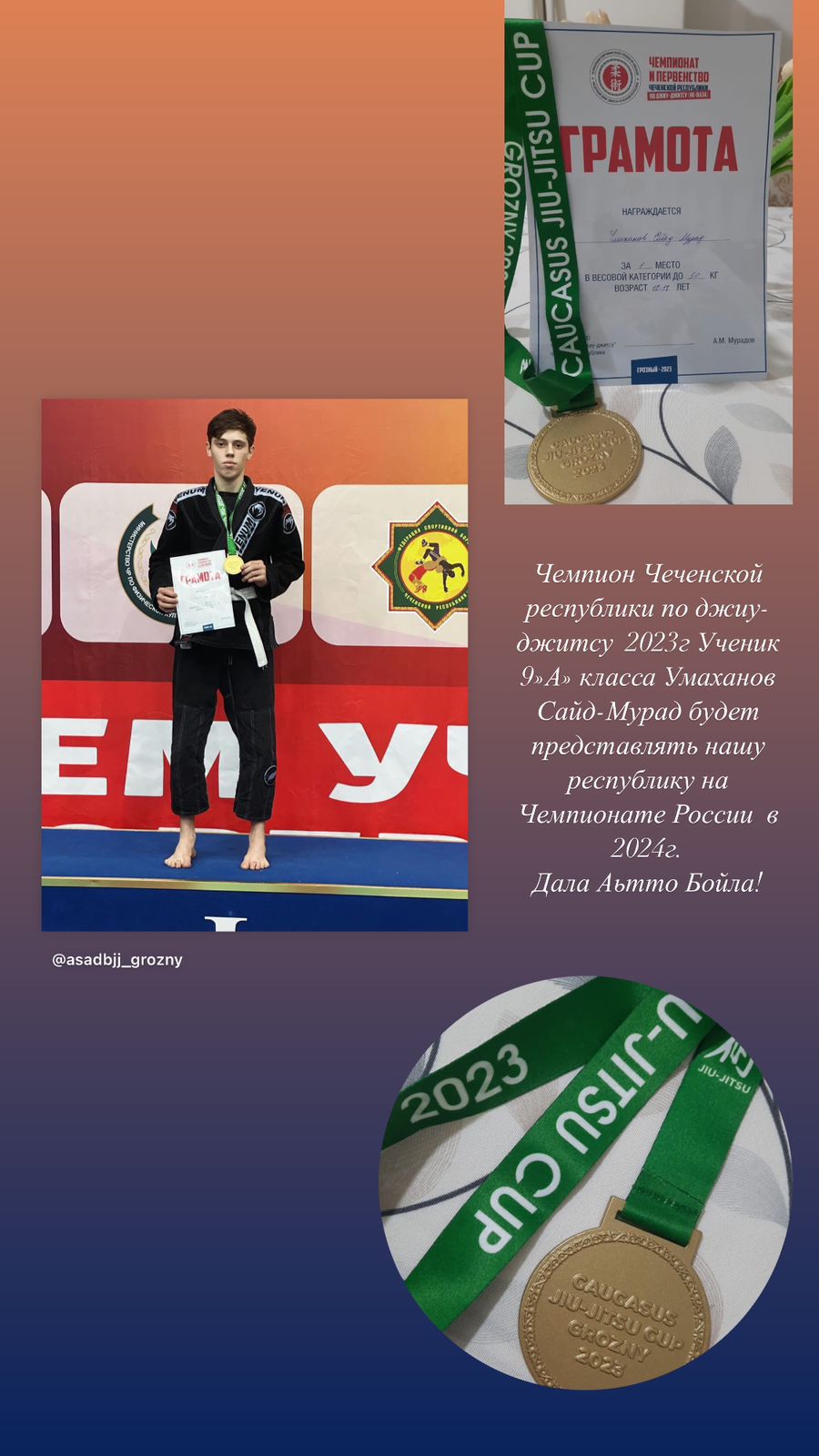 Чемпион Чеченской республики по джиу-джитсу 2023г. Ученик 9 «А» класса Умаханов Сайд-Мурад будет представлять нашу республику на Чемпионате России в 2024г. Дала аьтто бойла!