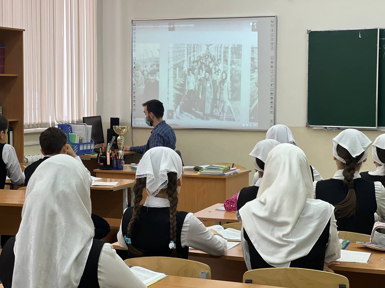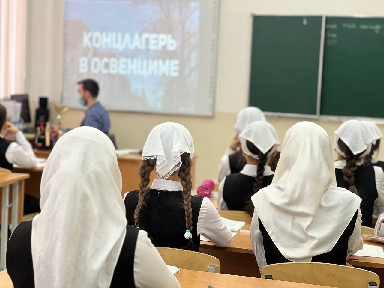 В МБОУ "СОШ13" г. Грозного Советником директора по воспитательной работе и взаимодействию с детскими общественными объединениями была организована онлайн экскурсия по крупнейшему концлагерю Аушвиц-Биркенау(Освенцим).
