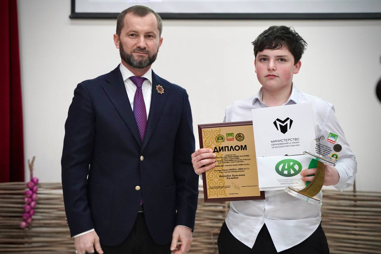 📜 В номинации «Лучшая мужская роль» победителем стал Вахидов Халид Хасанович, обучающийся 9 класса школы № 57 города Грозного.