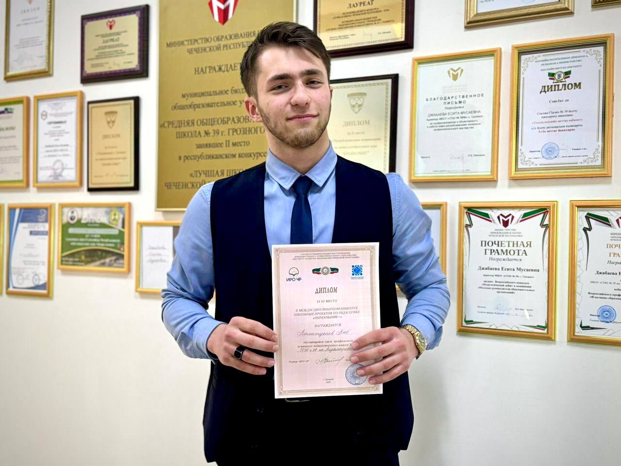 Аюб Ахматукаев, обучающийся профильного психолого-педагогического 11 класса МБОУ «СОШ № 39 им. Айдамирова Р.А.» г. Грозного, стал призером конкурса. Его проект «Триатлон педагогических компетенций обучающихся психолого-педагогических классов» был удостоен диплома за III место.