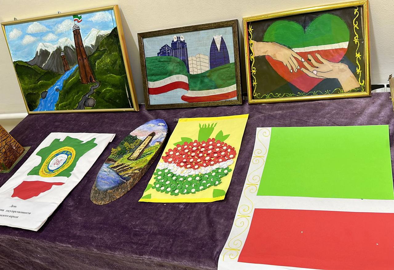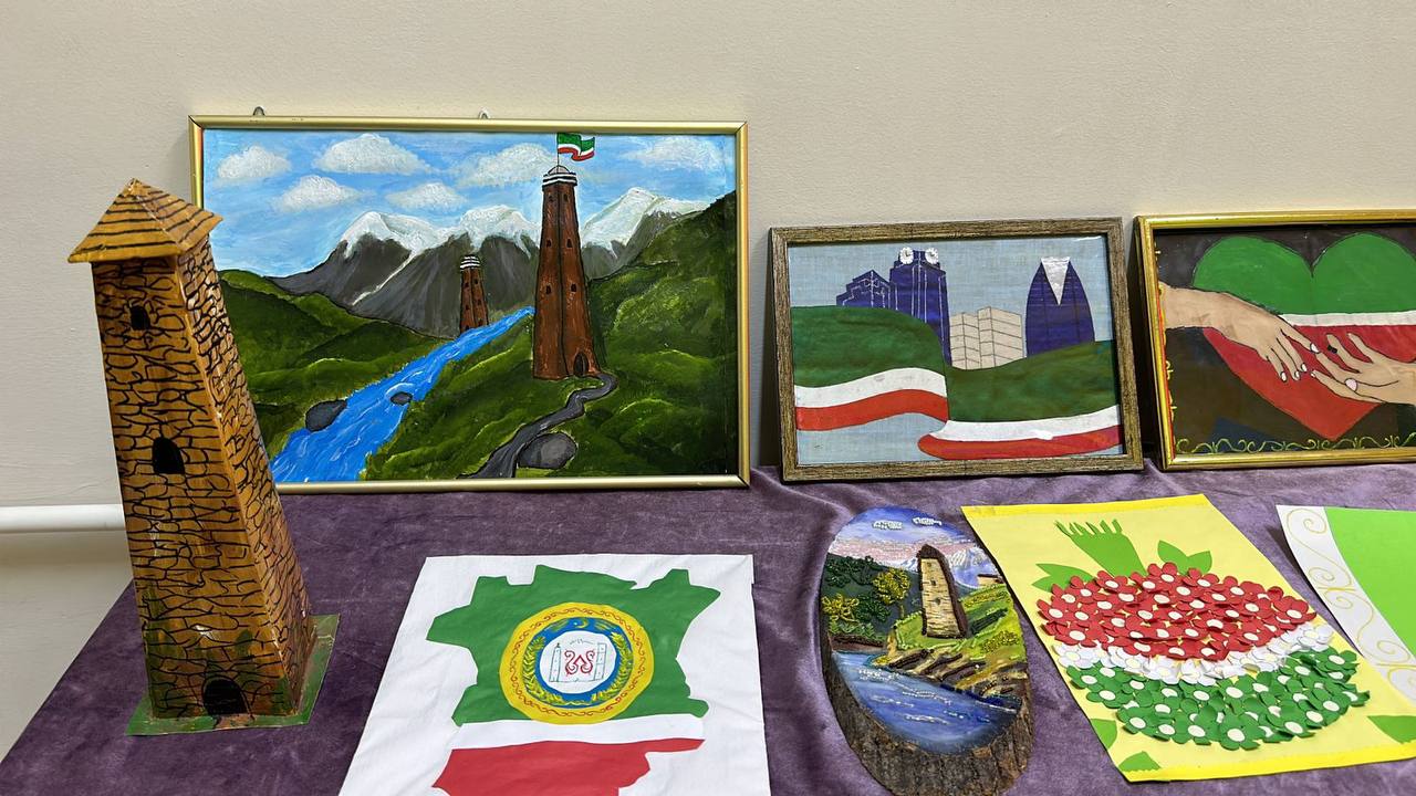 В МБОУ "СОШ №13" г. Грозного провели выставку детских рисунков символы государства. Работу выполнил ученик 9 "Б" класса Батаев Расул.