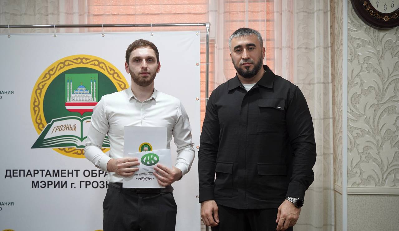 В честь праздника заместитель Мэра - начальник Департамента образования Мэрии Грозного Зелимхан Ахматов встретился с педагогом дополнительного образования МБОУ «Математическая школа № 1 имени Х. И. Ибрагимова» города Грозного Ахмадом Бимиевым.