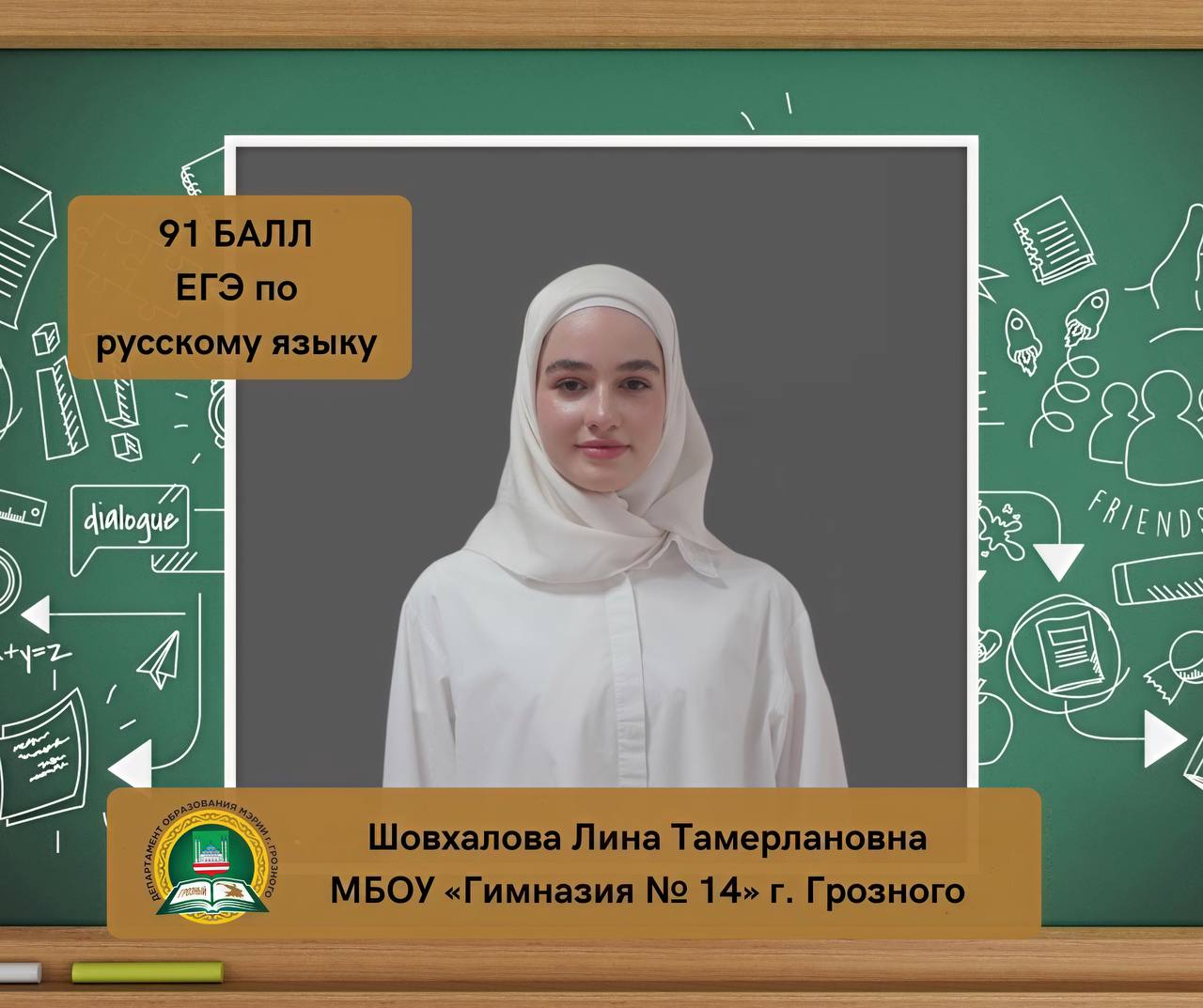 Шовхалова Лина Тамерлановна, ученица МБОУ «Гимназия № 14» г. Грозного, набрала 91 балл на ЕГЭ по русскому языку.