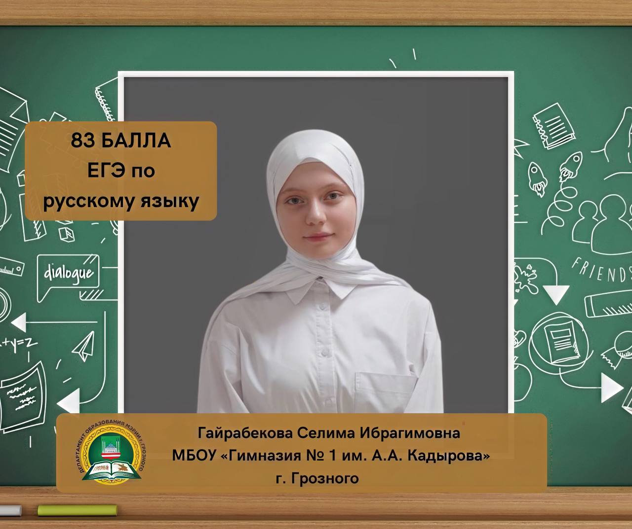Гайрабекова Селима Ибрагимовна, ученица МБОУ «Гимназия № 1 имени А.А. Кадырова» г. Грозного, набрала 83 балла на ЕГЭ по русскому языку.