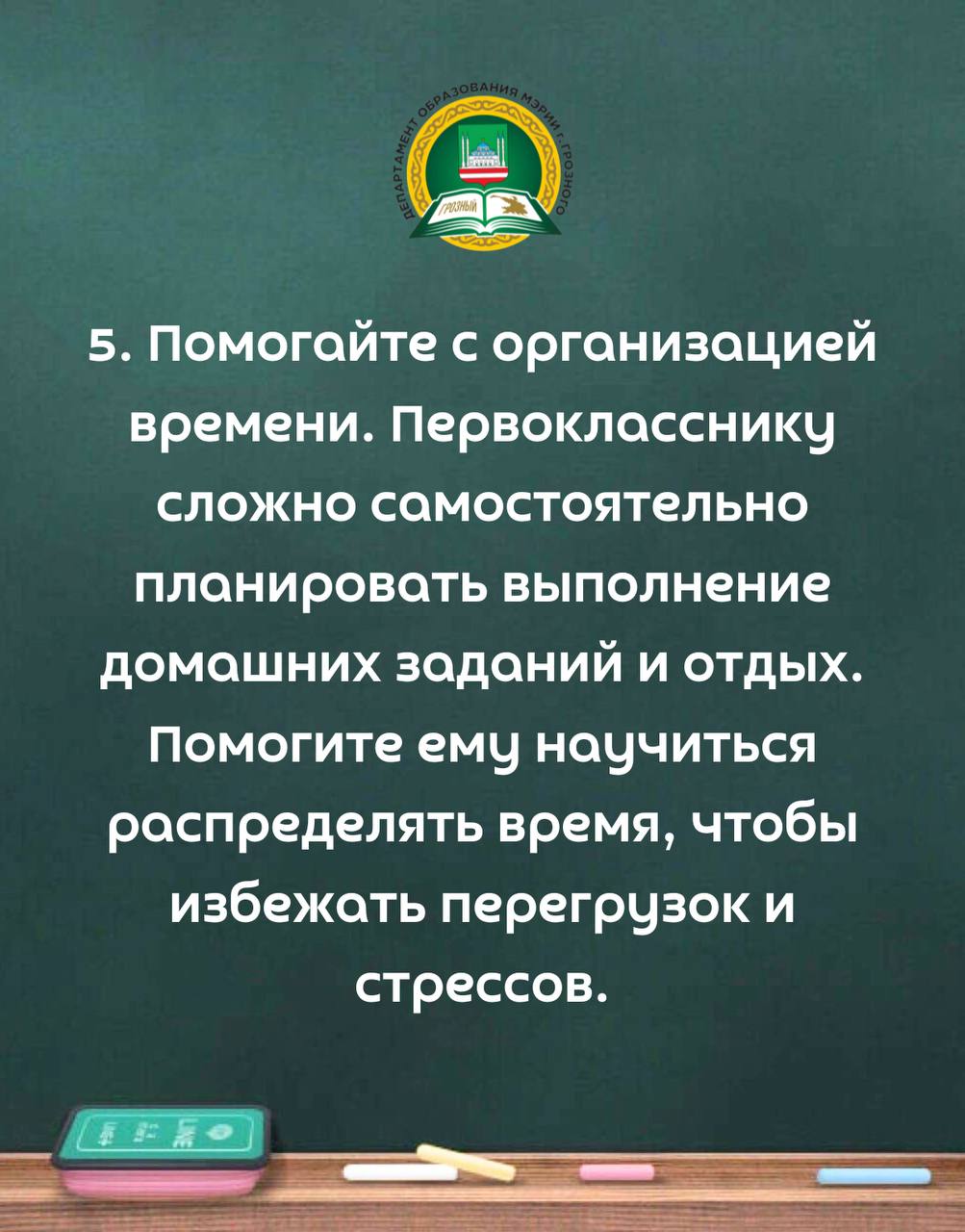 🤯 Первые месяцы обучения в школе - это сложный и волнительный период не только для детей, но и для их родителей. Чтобы помочь семьям справиться с возникающими трудностями, Департамент образования Мэрии города Грозного разработал специальные карточки с рекомендациями для родителей первоклассников.