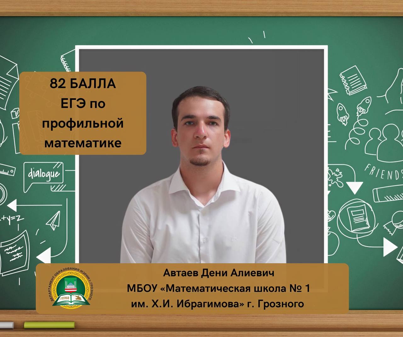 Автаев Дени Алиевич, ученик МБОУ «Математическая школа № 1 им. Х.И. Ибрагимова» г. Грозного, набрал 82 балла на ЕГЭ по профильной математике.