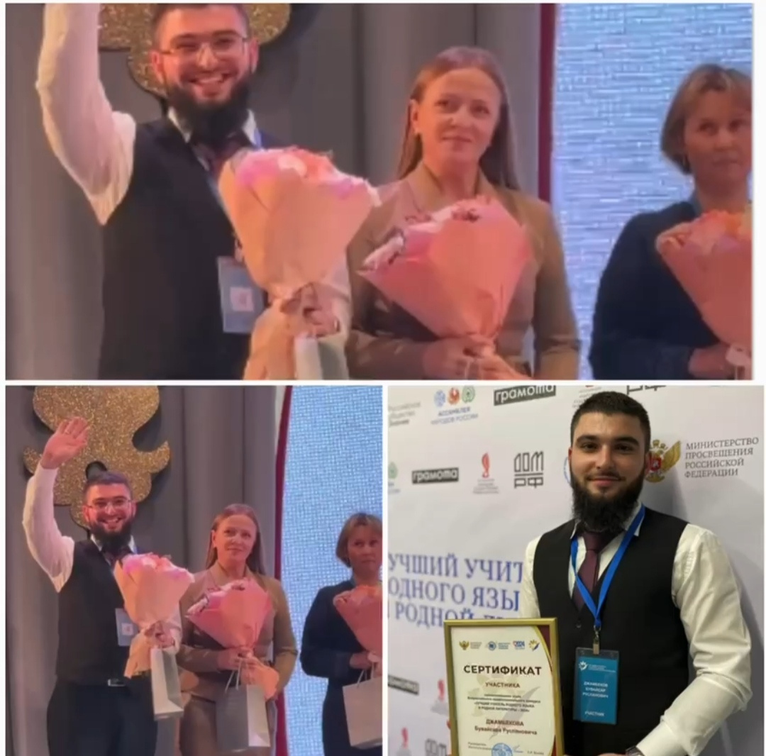 Дорогие друзья! Сегодня, 19 сентября, были подведены итоги первого тура Всероссийского конкурса «Лучший учитель родного языка и родной литературы», объявлены 15 лауреатов, и Джамбеков Бувайсар вошел в их число, выйдя в финальный этап конкурса. Теперь предстоит борьба за выход в пятерку лучших и определение победителя. Впереди два конкурсных испытания: мастер-класс и классный час с учащимися. Мы с нетерпением ждем новостей и надеемся, что наш учитель продолжит достойно представлять Чеченскую Республику и свой родной язык на заключительном этапе Всероссийского конкурса «Лучший учитель родного языка и родной литературы».