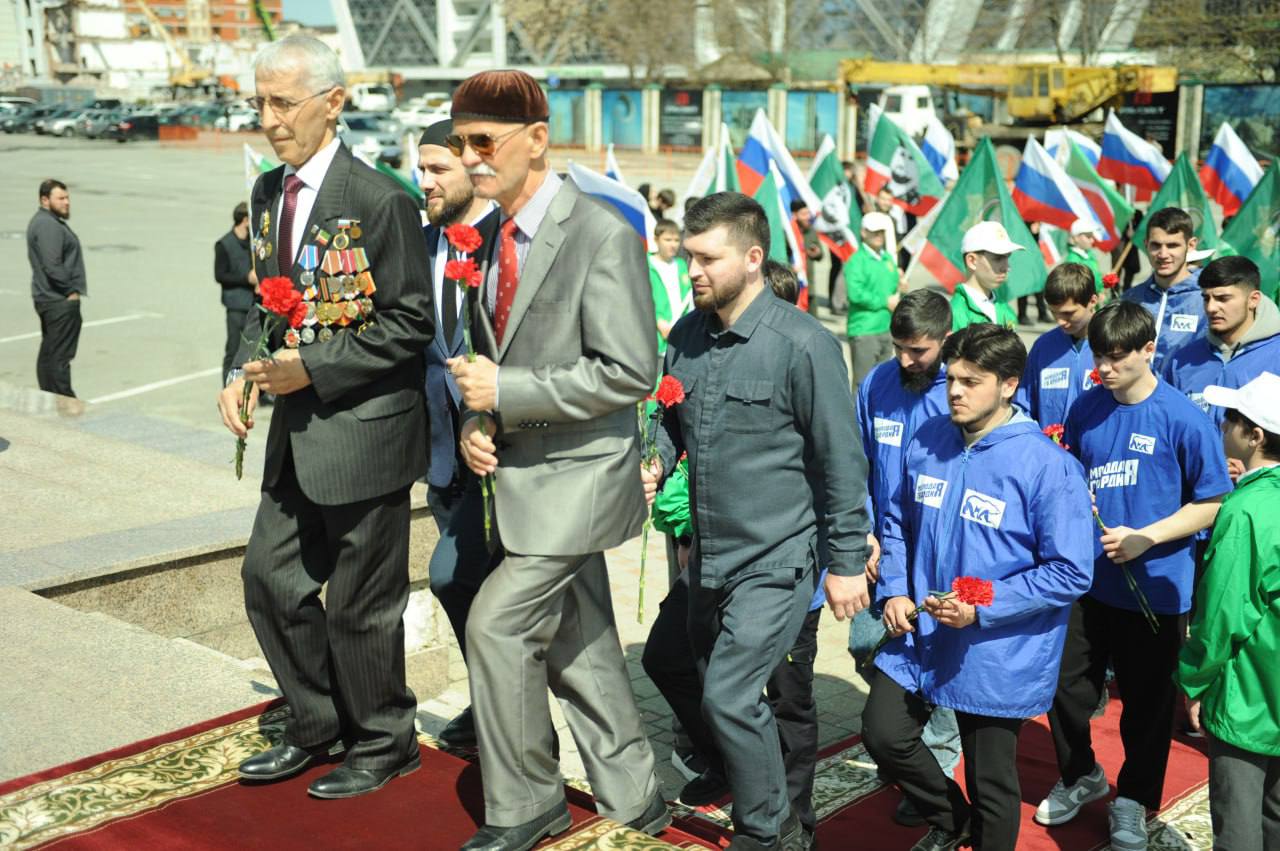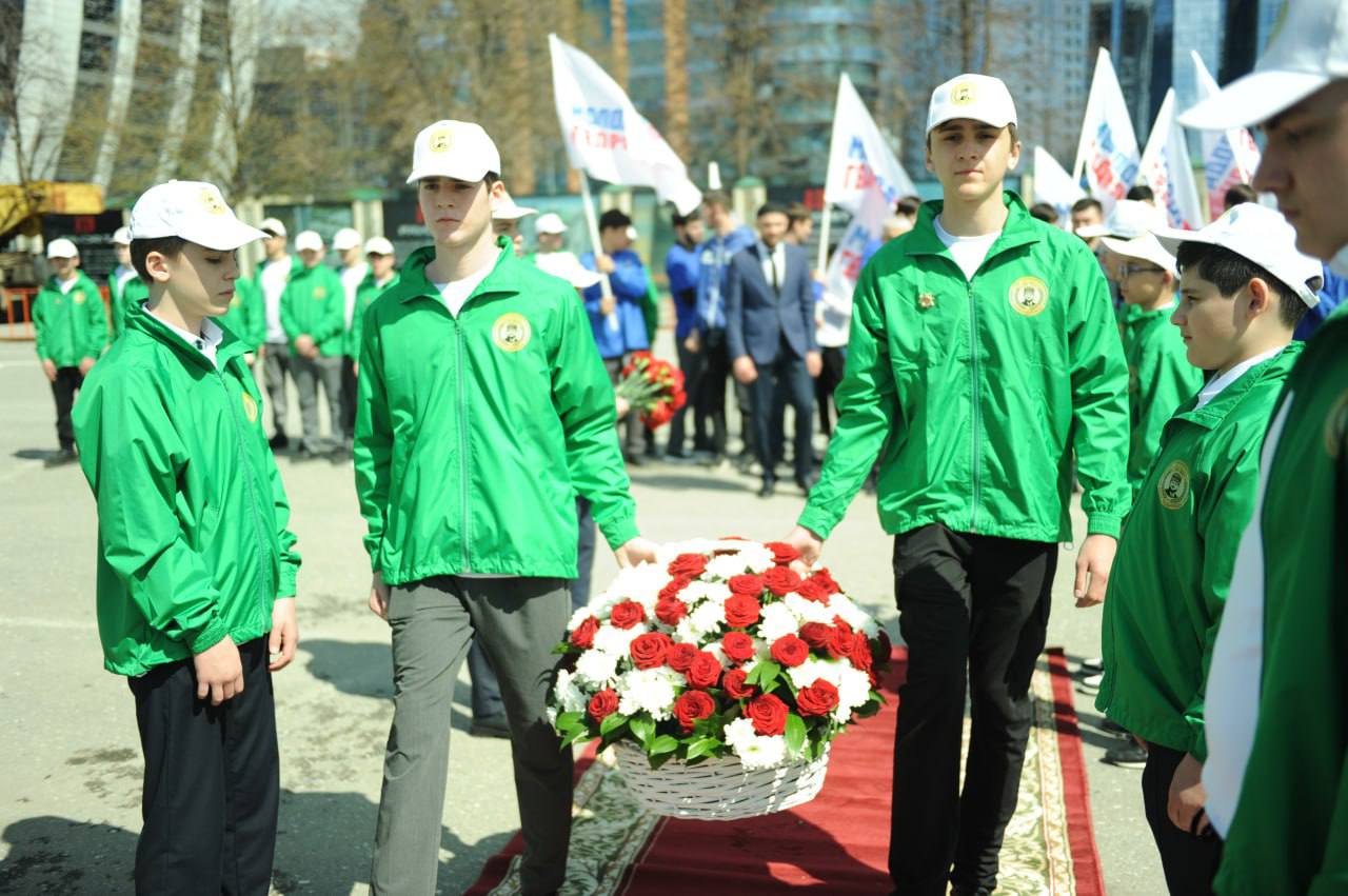 ▶️Мероприятие прошло возле одноименной стелы. В нем приняли участие ветераны военных действий, сотрудники Мэрии города, представители общественных и молодежных объединений, в том числе активисты молодежных организаций «Юные Кадыровцы», «Молодая гвардия» и МОПД «Ахмат». На месте был построен почетный караул и коридор с участием молодежи.