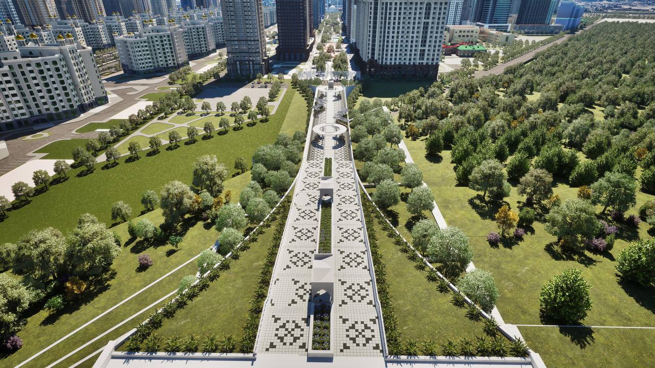 ✔️Одним из центральных элементов планировки района может стать бульвар, соединяющий две строящиеся мечети. Он выполняет не только транспортно-прогулочную функцию, но и символизирует единство духовных ценностей и динамику развития современного города. В настоящее время концепция находится на этапе разработки.