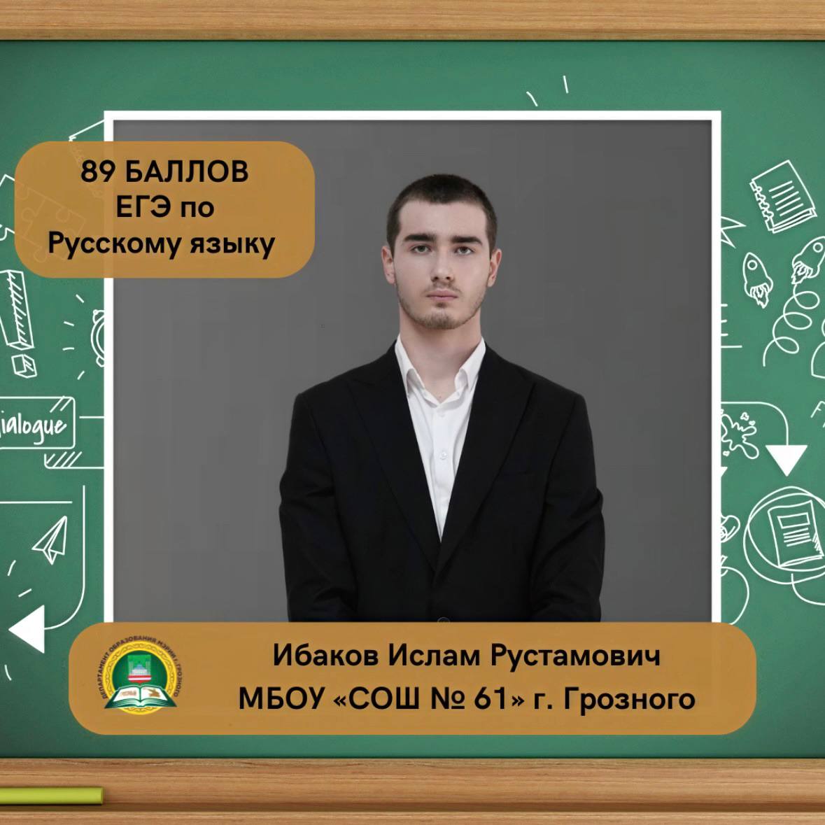 Ибаков Ислам Рустамович, ученик МБОУ «СОШ № 61» г. Грозного, набрал 89 баллов на ЕГЭ по русскому языку.