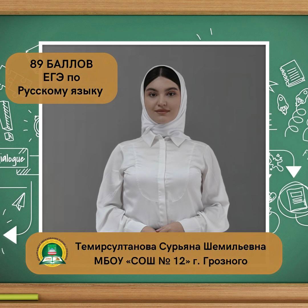 Темирсултанова Сурьяна Шемильевна, ученица МБОУ «СОШ № 12» г. Грозного, набрала на ЕГЭ 89 баллов по русскому языку.