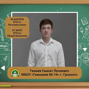 Тамаев Умалат Лечиевич, ученик МБОУ «Гимназия № 14» г. Грозного, набрал 86 баллов на ЕГЭ по русскому языку, 86 баллов по профильной математике и 81 балл по обществознанию.