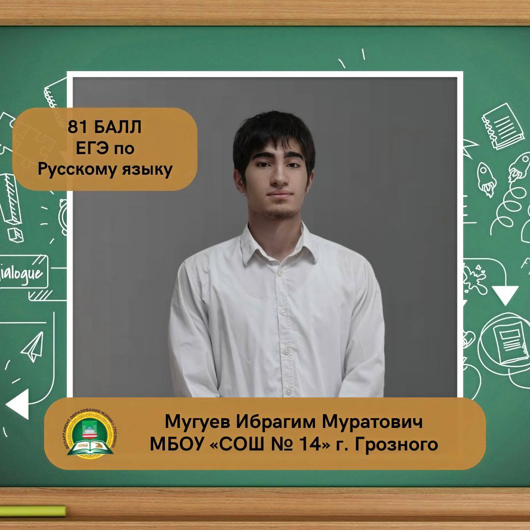 Мугуев Ибрагим Муратович, ученик МБОУ «СОШ № 14» г. Грозного, набрал на ЕГЭ 81 балл по русскому языку.