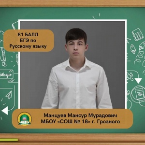 Манцуев Мансур Мурадович, ученик МБОУ «СОШ № 18» г. Грозного, набрал на ЕГЭ 81 балл по русскому языку.