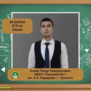 Алиев Тимур Тамерланович, ученик МБОУ «Гимназия № 1 им. А.А. Кадырова» г. Грозного, набрал на ЕГЭ 84 балла по химии.