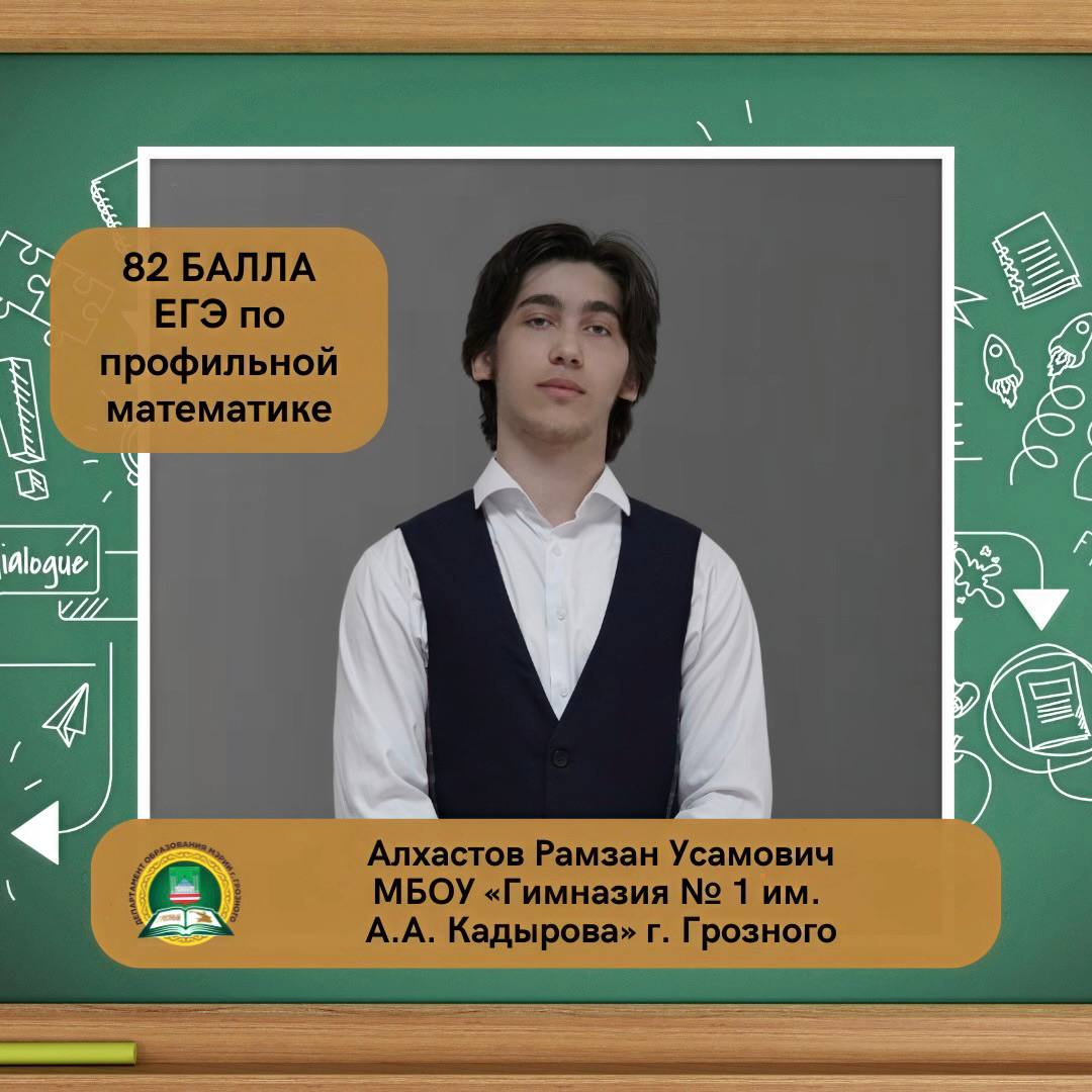 Алхастов Рамзан Усамович, ученик МБОУ «Гимназия № 1 им. А.А. Кадырова» г. Грозного, набрал на ЕГЭ 82 балла по профильной математике.