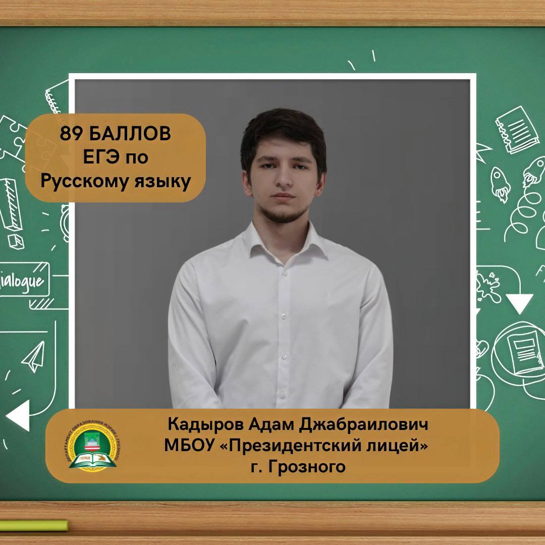 Кадыров Адам Джабраилович, ученик МБОУ «Президентский лицей» г. Грозного, набрал на ЕГЭ 89 баллов по русскому языку.