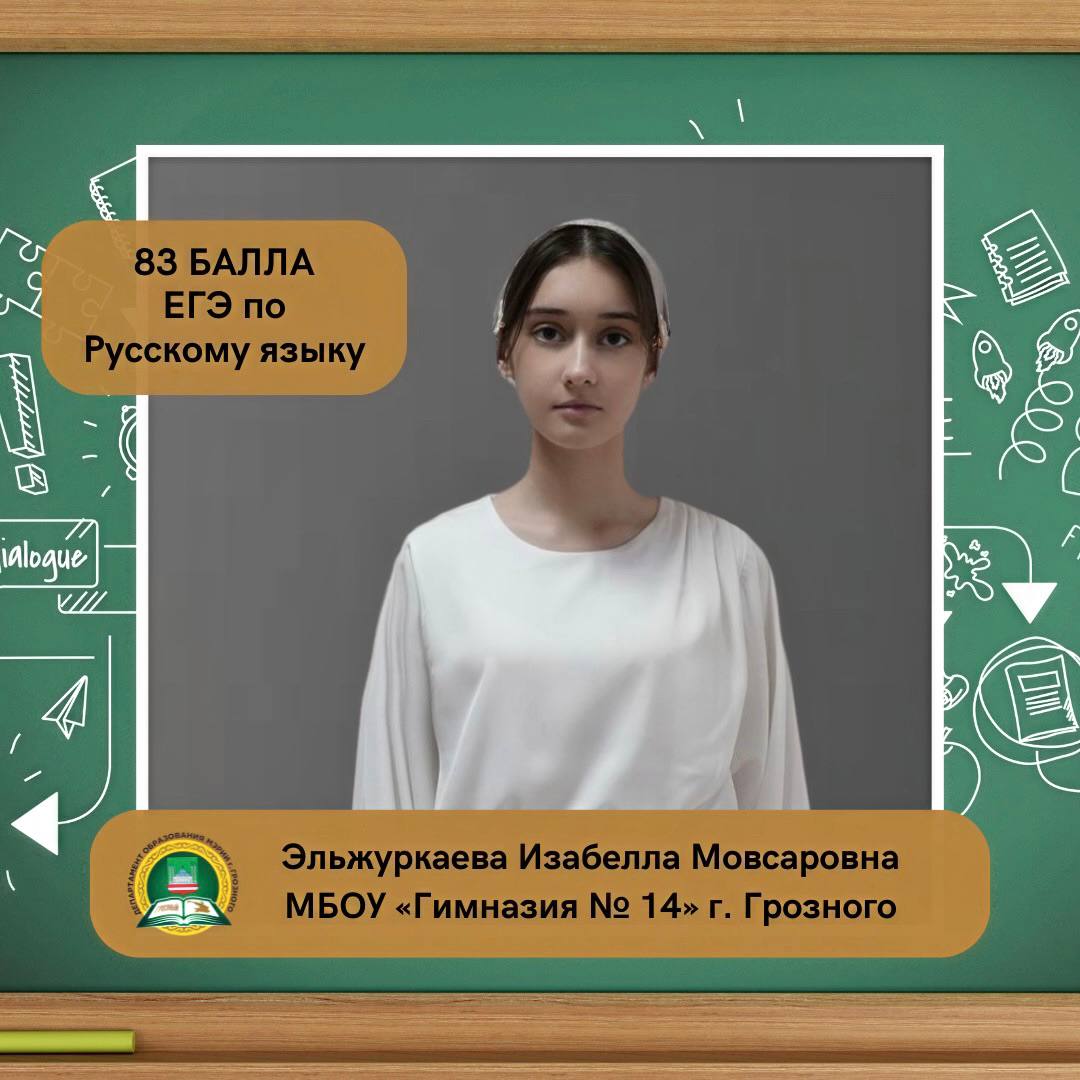 Эльжуркаева Изабелла Мовсаровна, ученица МБОУ «Гимназия № 14» г. Грозного, набрала на ЕГЭ 83 балла по русскому языку.