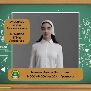 Бакаева Амина Эмхатовна, ученица МБОУ «СОШ № 60» г. Грозного, набрала на ЕГЭ 89 баллов по русскому языку и 89 баллов по литературе.