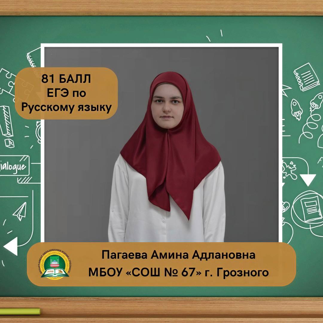 Пагаева Амина Адлановна, ученица МБОУ «СОШ № 67» г. Грозного, набрала на ЕГЭ 81 балл по русскому языку.