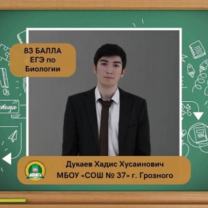 Дукаев Хадис Хусаинович, ученик МБОУ «СОШ № 37» г. Грозного, набрал на ЕГЭ 83 балла по биологии.
