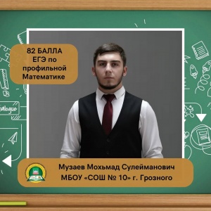 Музаев Мохьмад Сулейманович, ученик МБОУ «СОШ № 10» г. Грозного, набрал на ЕГЭ 82 балла по профильной математике.