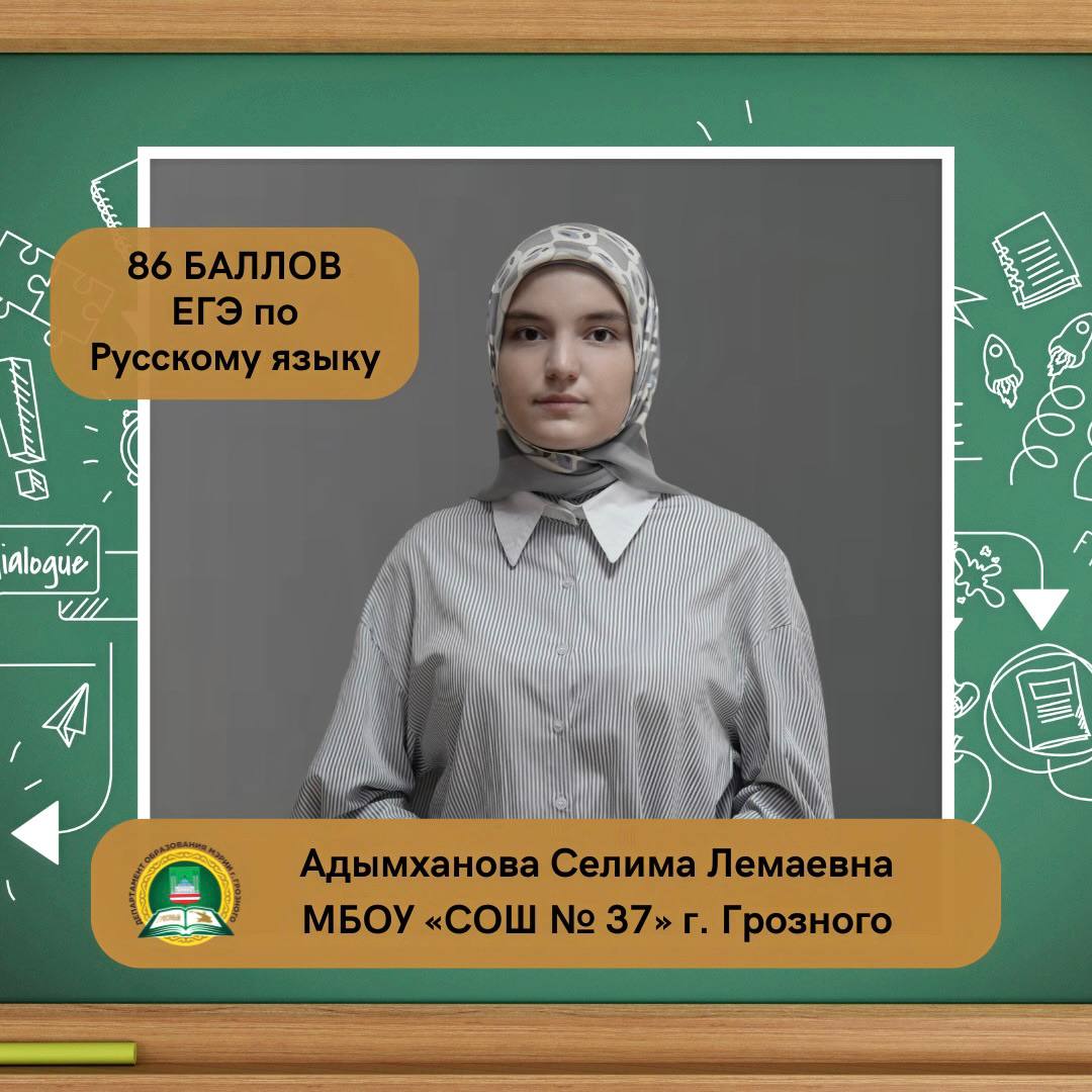 Адымханова Селима Лемаевна, ученица МБОУ «СОШ № 37» г. Грозного, набрала на ЕГЭ 86 баллов по русскому языку.