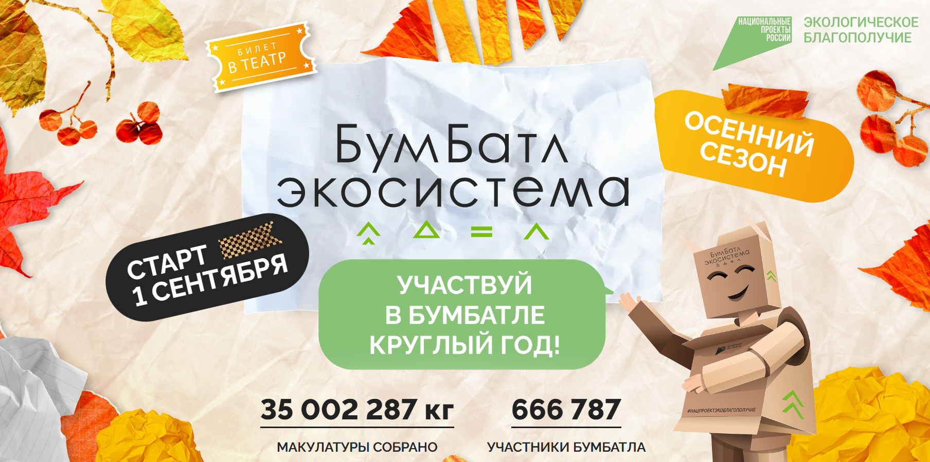 07.11.2025В рамках реализации национального проекта «Экологическое благополучие» с 1 сентября по 30 ноября 2025 года стартовал осенний сезон Всероссийской акции по сбору макулатуры «БумБатл» (далее – Акция).